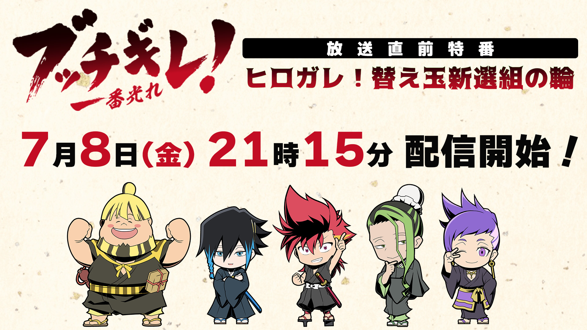 メインキャスト5名が出演する放送直前特番「ヒロガレ!替え玉新選組の輪」の配信が決定。第1話放送に向けて、豪華キャスト陣が作品の見どころやキャラクターの魅力についてとことん語り尽くします!