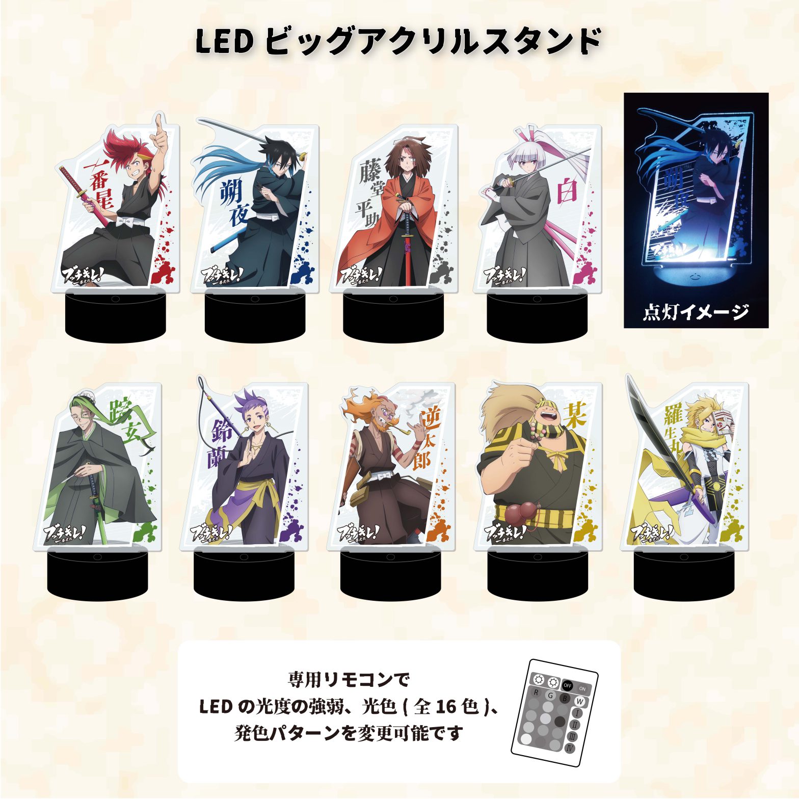 〈商品説明〉 立てて飾れるアクリルボードです。 〈商品名〉 アクリルアートボード「ブッチギレ!」01/キービジュアルデザイン 〈価格〉 2500円(税抜) 〈発売日〉 8月8日17時 〈素材〉 アクリル 〈 …